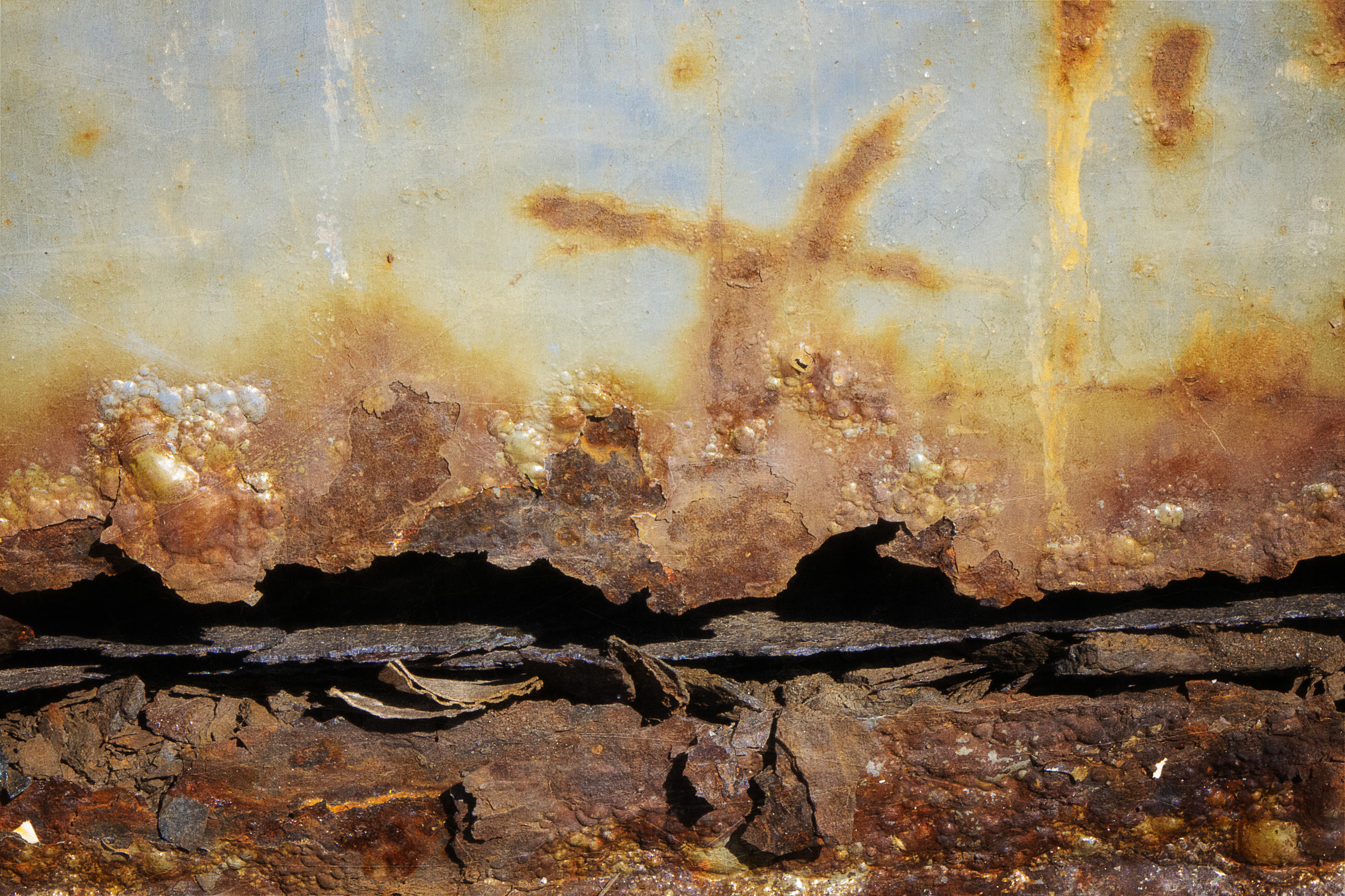 Today I will discuss something I look for in my photography - TEXTURE. I Love textures. I used to really go overboard on textures and that is the reason I've re-edited some of my old photos. When the photo is a photo of a texture or when there is plenty of texture in the photograph already it is not necessary to add any texture. Texture should be treated like a fine wine. A glass or two is perfect but if you get drunk you become an absolute mess. Using texture is much the same (in my opinion). Now I will add a caveat there are times for working on an abstract original a severe or obvious texture may add to the overall composition but these are rare instances. Generally speaking texture is is like frosting on the cake. You want some but you also want the cake also. Okay maybe that's not the best analogy because I'm sure there are readers out there who would argue they could live on frosting alone (you know who you are). LOL 🙂 I also love poetry. I love poetry for it's ability to condense feelings, emotions, images, impressions into a few words - no need to write a novel. At least I don't feel the need to write a novel. :-). Textures for me provide that same ability and can change a "feeling" or "impression" of an image just by adding some textures - the same that poetry does for language or storytelling. My newest texture was created using this photo below. It is simply a photograph of paint/tar splatter on concrete wall under a roadway where homeless camp out from time to time. When I photographed this I took the image with an intention of using it as a texture. I didn't know how at the time but today it all came together.