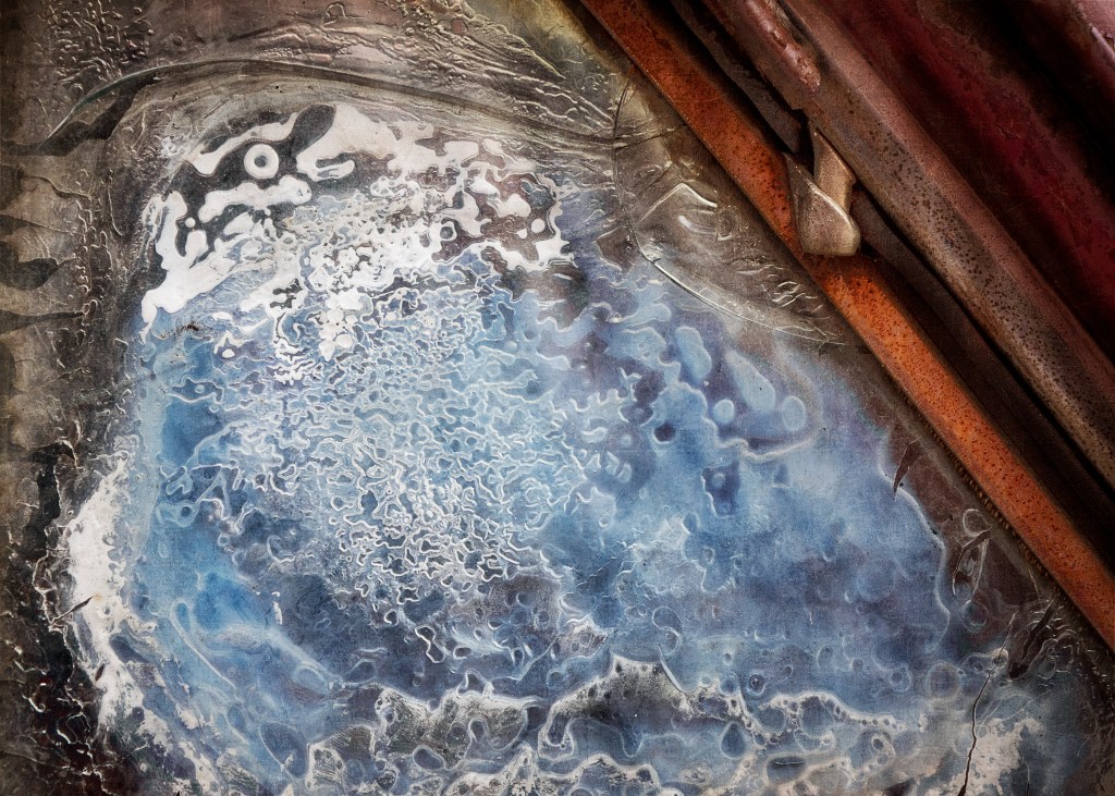 The virtue of looking back thru old files. In todays example files from 2018. I remember when I took these two photos I was intriqued by what had happened to the glass of this automobile. We are used to glass cracking, breaking and shattering but this glass seemed to be in a slow-motion movement of decay. I've paired each image from a song from Philip Glass' SONGS FROM LIQUID DAYS. When I listen to the music while staring at the photo - it generates a deep level of emotion and imagination in me. I hope you enjoy them as well.